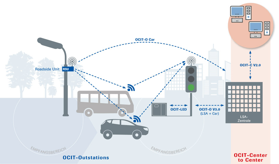 In den OCIT-Definitionen festgelegt werden Systemarchitektur, Regeln, OCIT-Protokolle, Funktionen und Übertragungsprotokolle.